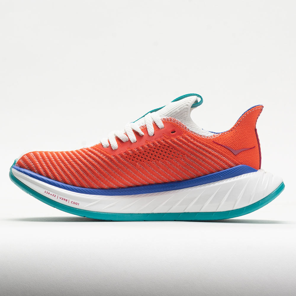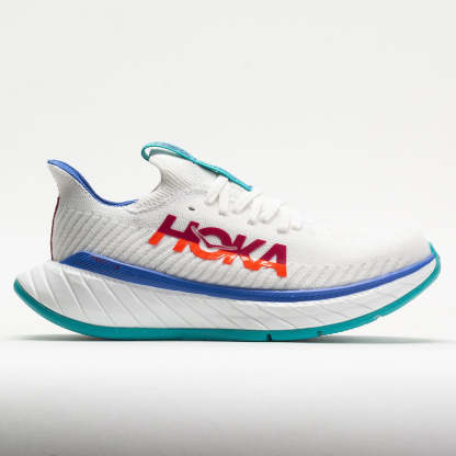 Unleash your speed in the Hoka Carbon X 3! This neutral running shoe is more propulsive than its predecessor, with a ProFlyX? midsole and a cozy knit upper. Enjoy swift and snappy transitions from the carbon fiber plate and aggressive Meta-Rocker technology. In the midsole, a soft and light EVA foam blends with a durable, rubberized EVA foam for a fast feel at ground contact. Finished with a colorful and asymmetrical design, the Hoka Carbon X 3 makes a bold statement as you cross the finish line!
